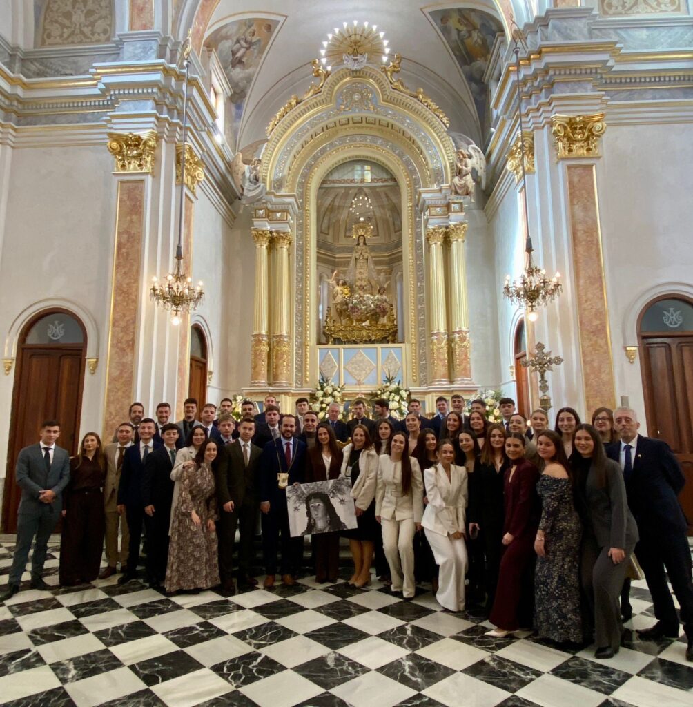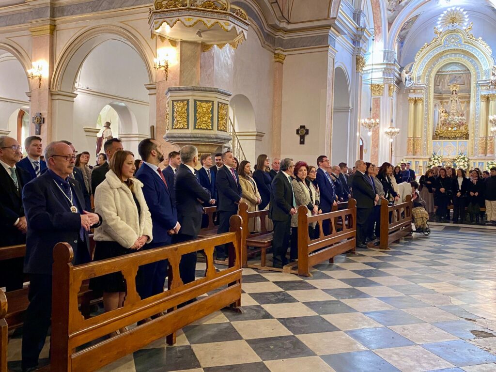 El templo estaba abarrotado de cofrades y fieles, con la presentación en su primer acto oficial de la Clavaría Mayoralía 2026-27 en el día de la Purísima. También nos acompañó la Junta de la Banda Primitiva, siempre presente en nuestros días significativos.