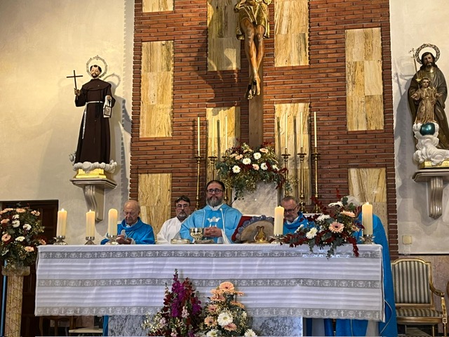 Con un templo abarrotado de cofrades y fieles, con la presencia de la Clavaría Mayoralía 2024-25, y con la Junta de la Banda Primitiva, siempre presente en nuestras grandes celebraciones, hemos celebrado la Eucaristía presidida por nuestro párroco D. Rafael Fernández y concelebrada por varios sacerdotes hijos de LLíria.