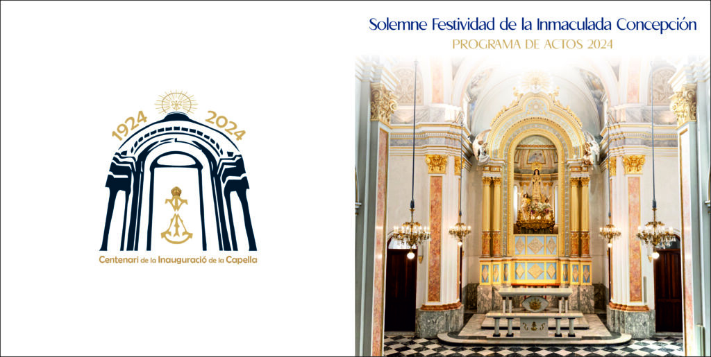 Si el año pasado la portada del díptico era la fotografía en blanco y negro de la inauguración de la Capilla el año 1924, este año 2024 cerramos el círculo con la portada de la fotografía realizada con motivo de la restauración inaugurada el pasado 27 de abril.